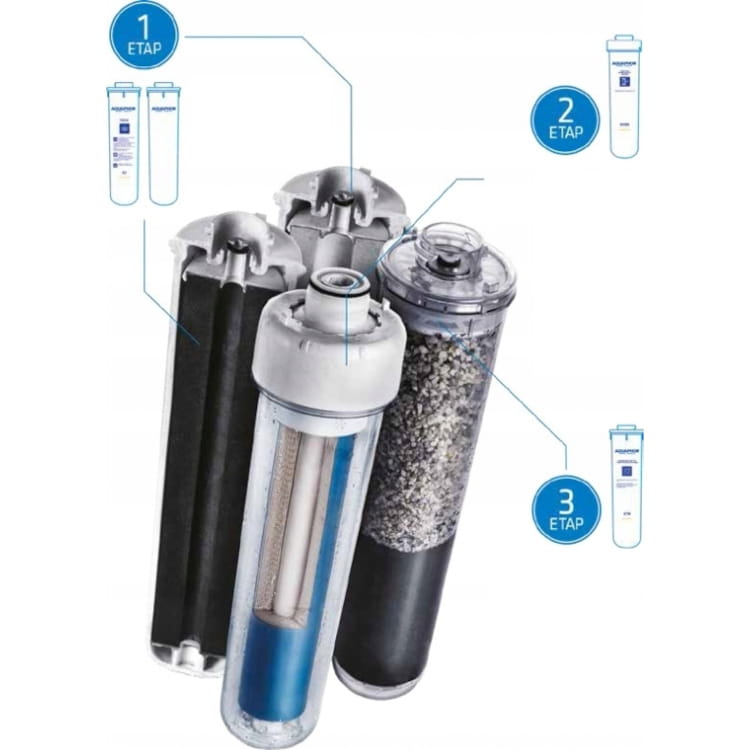 - przeznaczony do precyzyjnego oczyszczania wody wodociągowej z najmniejszych zanieczyszczeń w tym związków organicznych, metali ciężkich, chloru, azotynów i azotanów oraz bakterii i wirusów