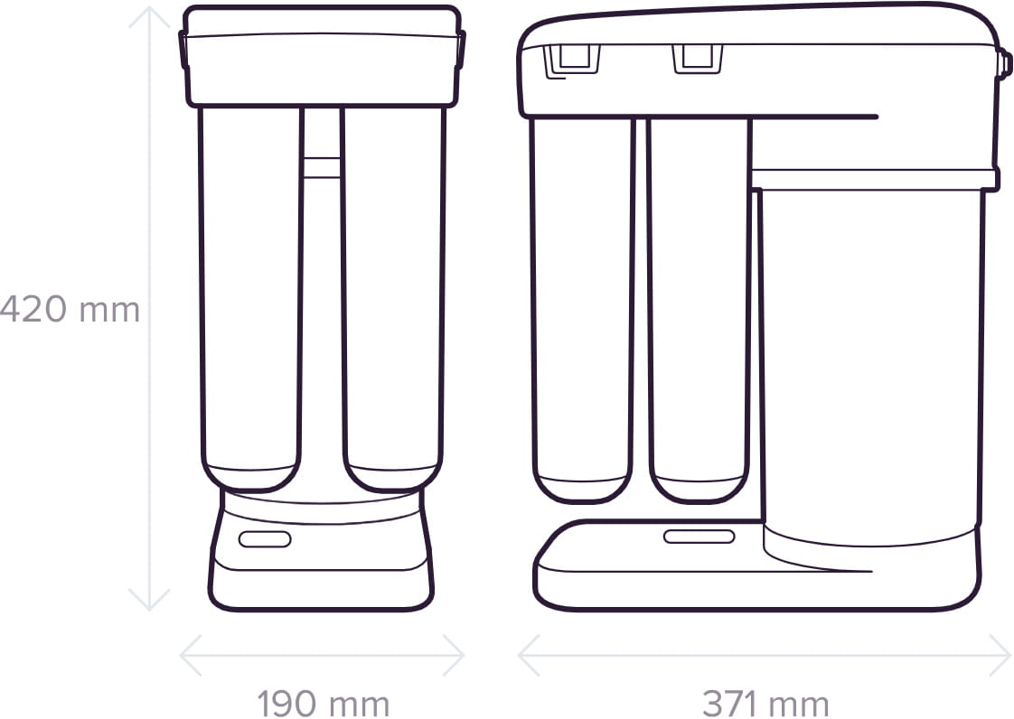 - kompaktowe wymiary dzięki zastosowaniu innowacyjnej konstrukcji głowicy filtra oraz zbiornika wody oczyszczonej