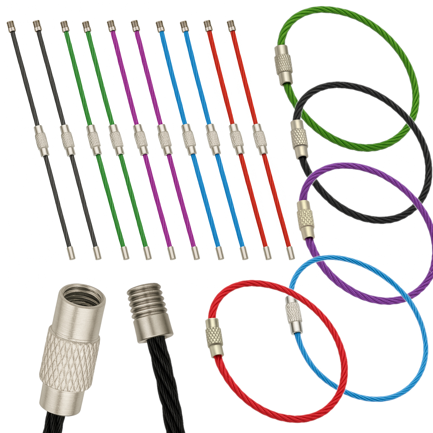 Brelok, breloczek, kółko, linka stalowa skręcana do kluczy 10 szt. Kolory