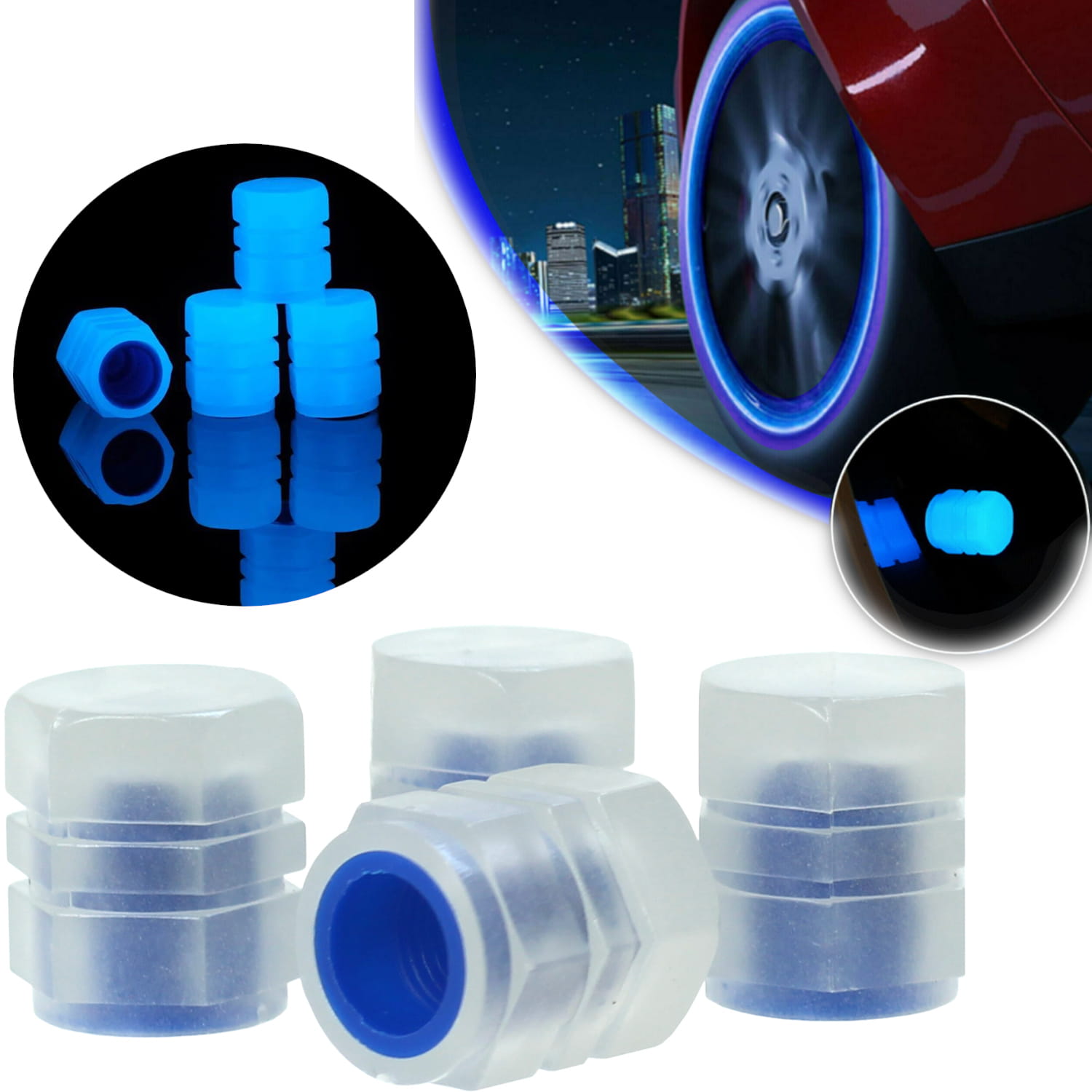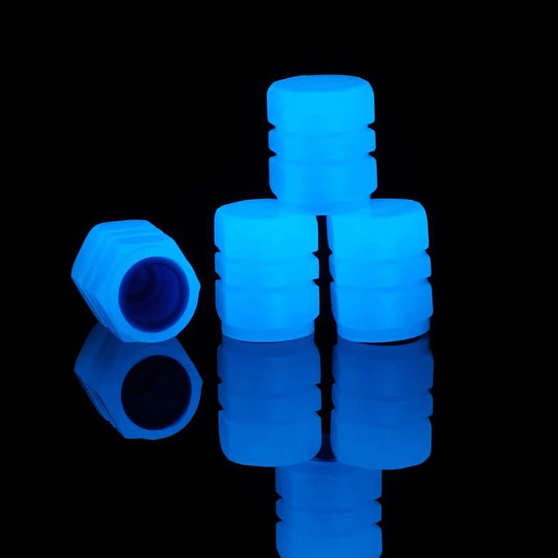 Fluorescencyjne nakrętki nakładki na wentyle świecące w nocy 4 szt. Niebieskie