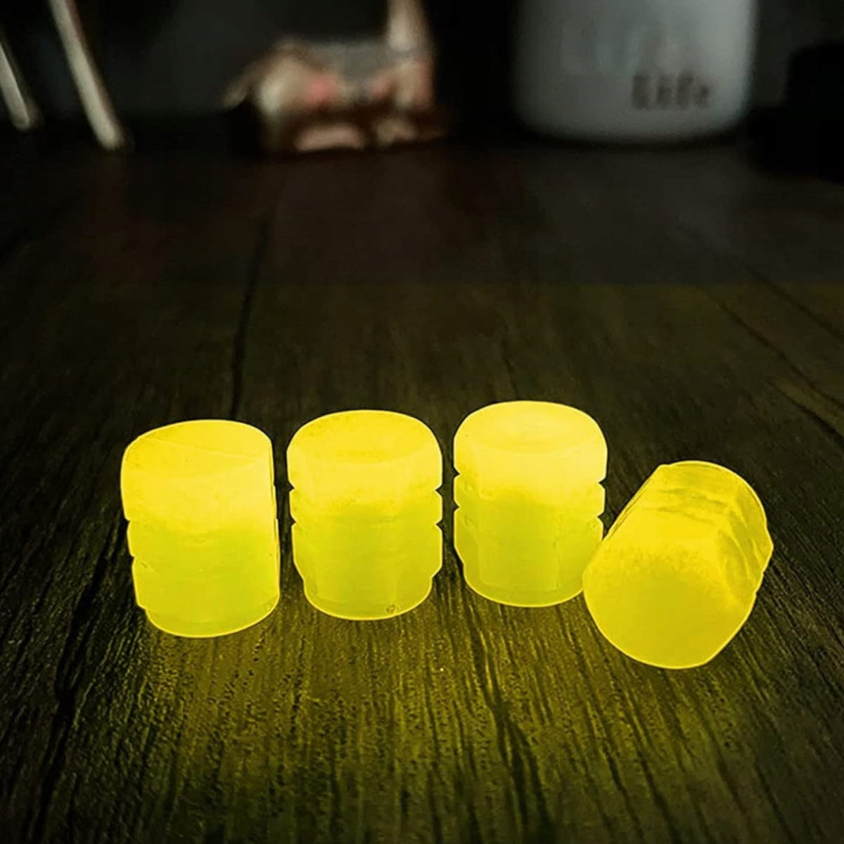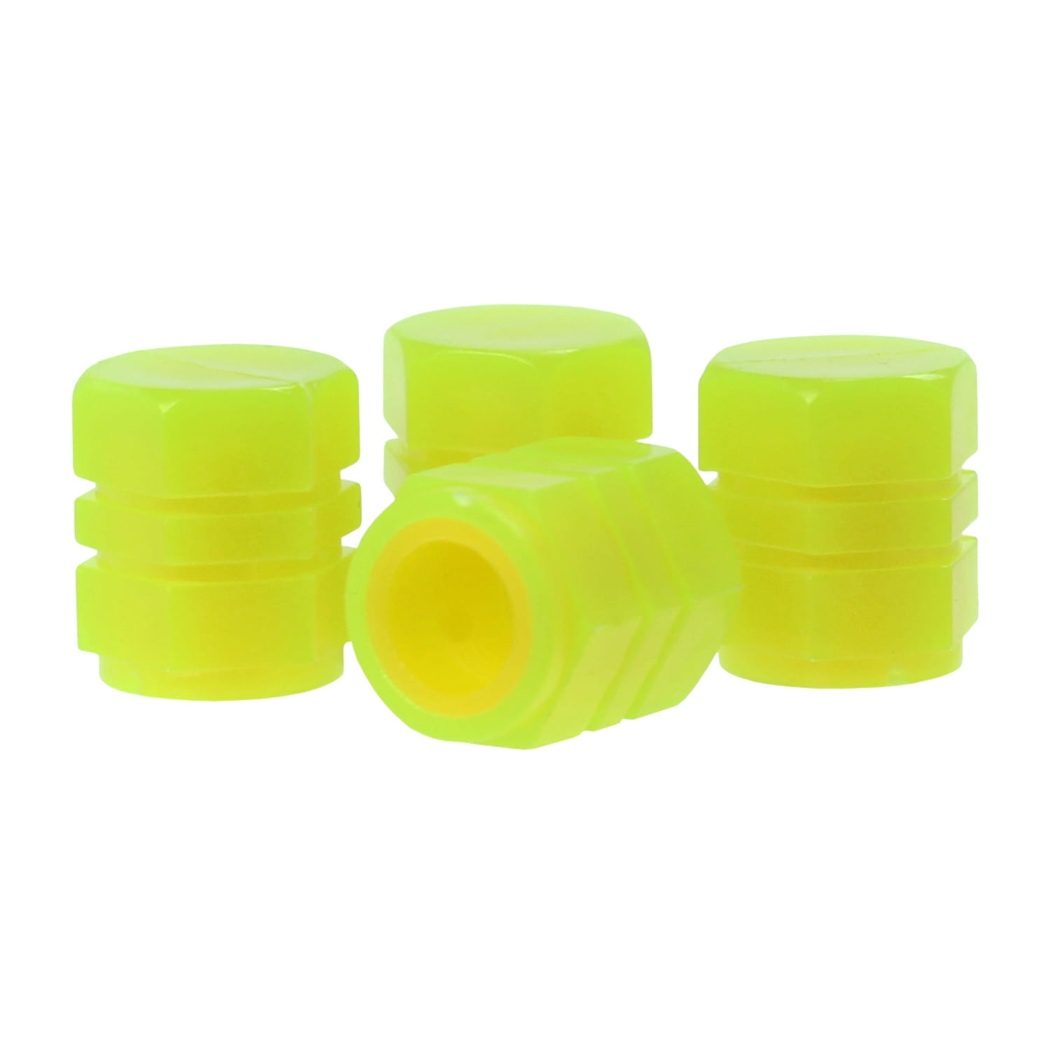 Fluorescencyjne nakrętki nakładki na wentyle świecące w nocy 4 szt. Żółte