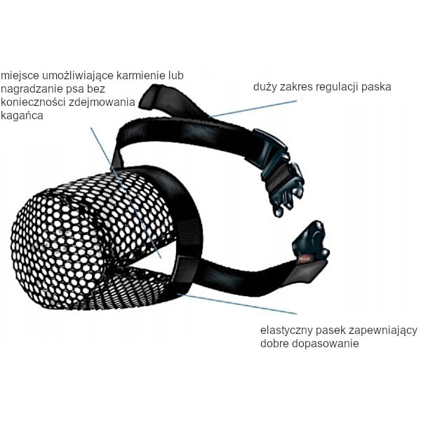 - elastyczny pasek zapewnia dobre dopasowanie kagańca na pysku