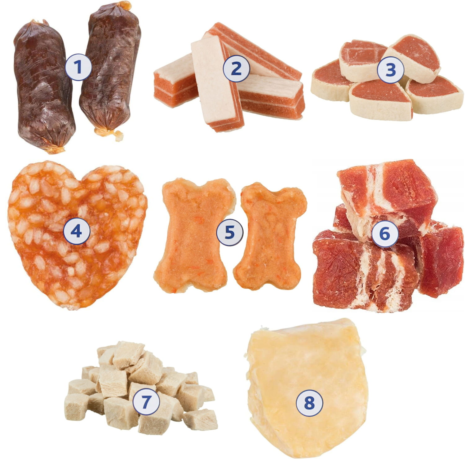 - 8 różnorodnych przysmaków dzięki którym pupil pozna nowe, unikalne smaki z linii Trixie