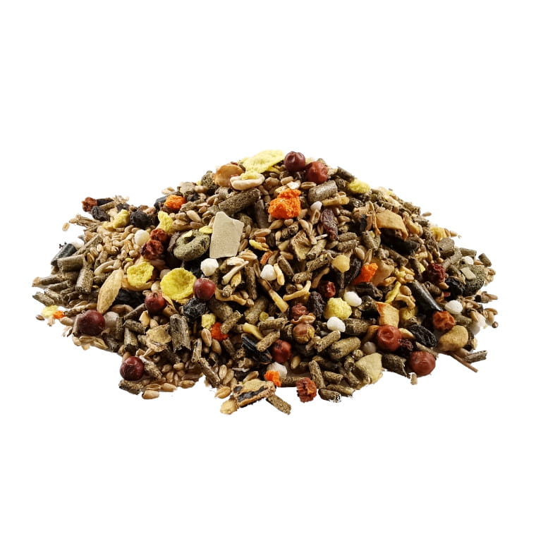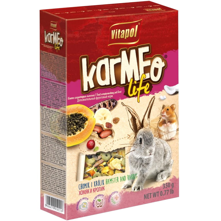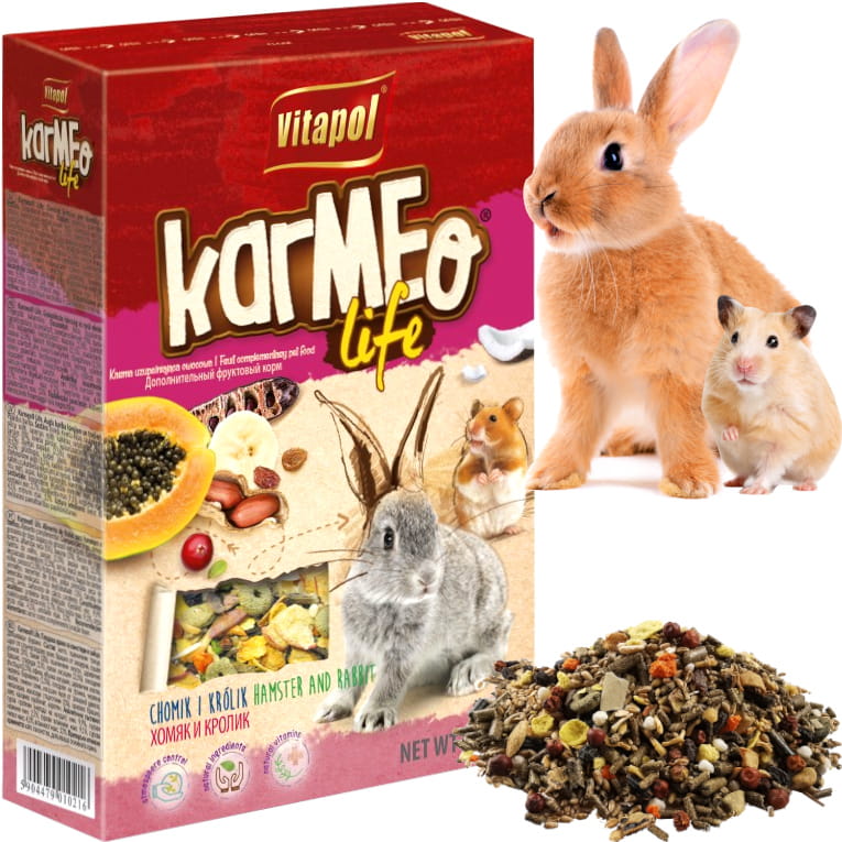 - mieszanka najlepszej jakości zbóż, nasion oraz witaminizowanych granulatów wzbogacona dużą ilością owoców dla królików, chomików oraz innych gryzoni
