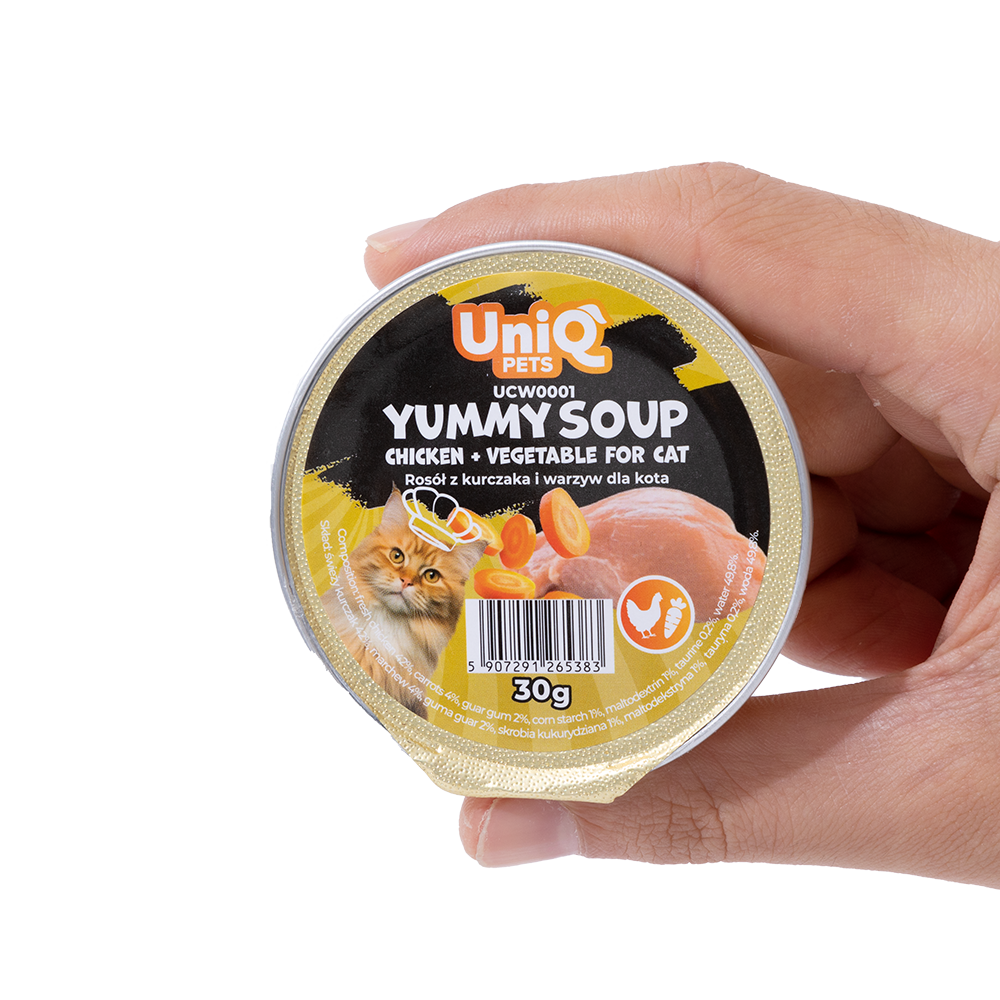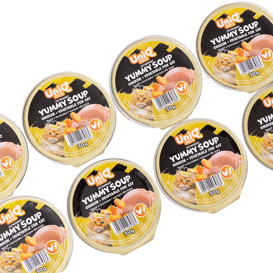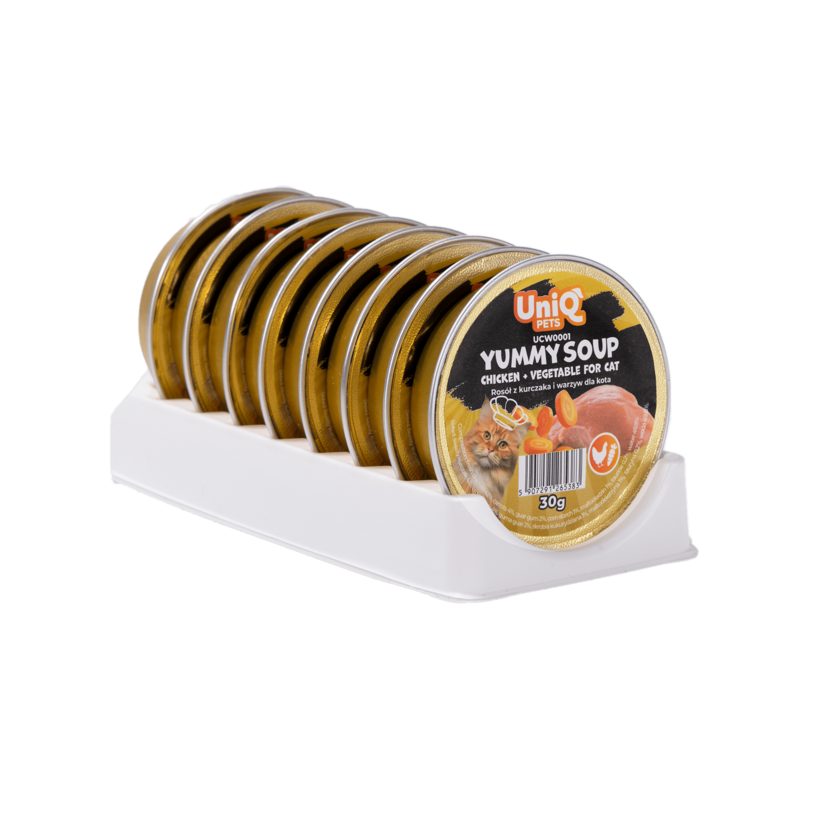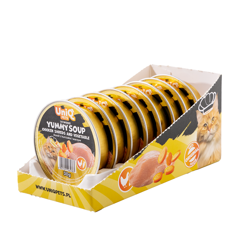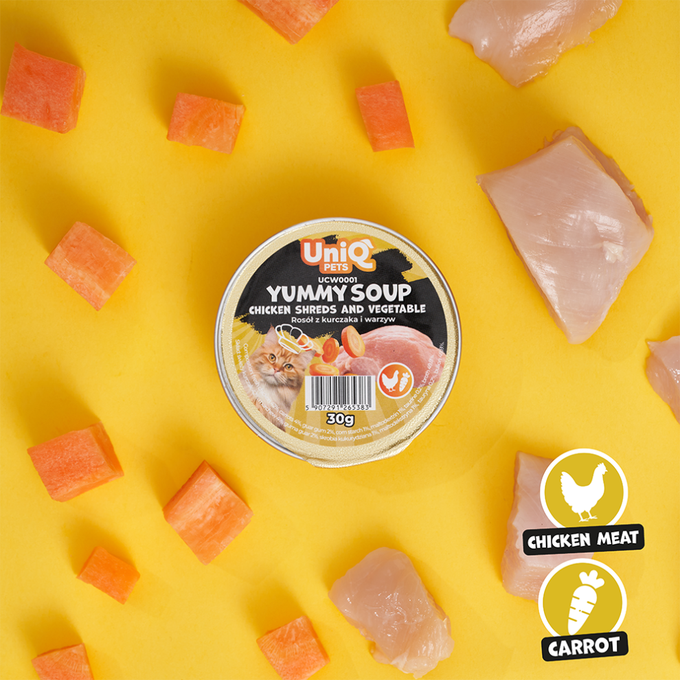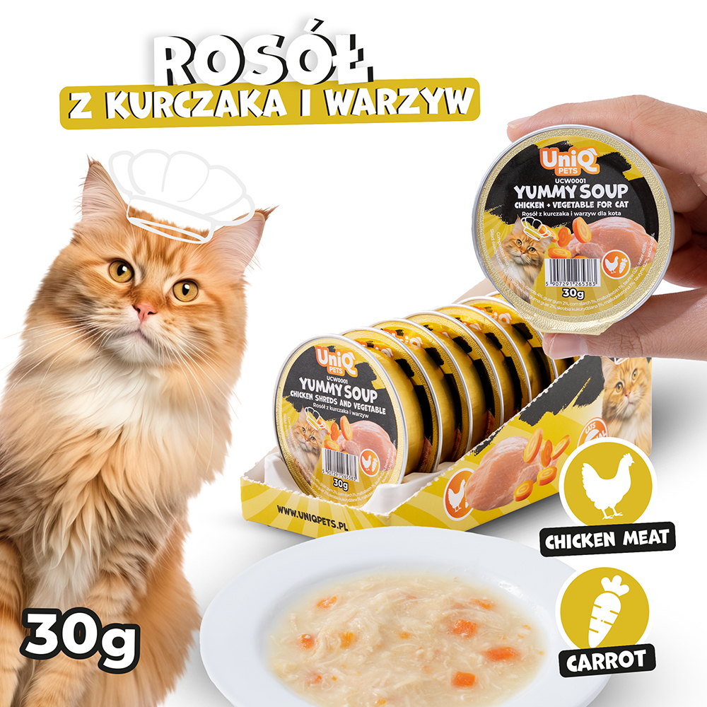 - Rosół z Kurczaka i Warzyw Yummy Soup UniQ Pets 8x30g (8 puszek po 30g każda)