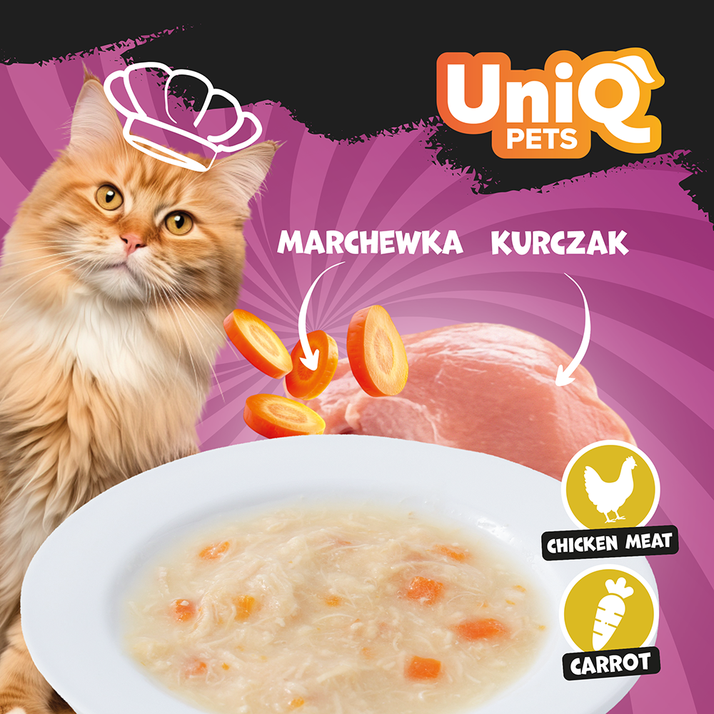 Karma mokra dla kota Rosół z Kurczaka i Warzyw Yummy Soup UniQ Pets 8x30g