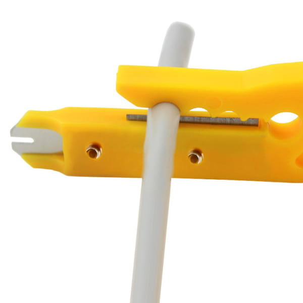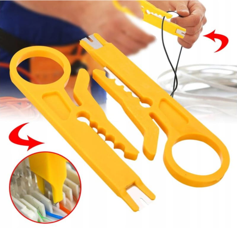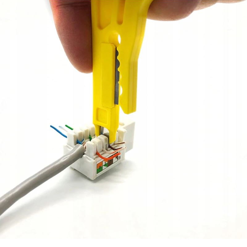 - wyposażony w nóż tak by szybko i wygodnie naciąć izolację na przewodzie typu skrętka UTP/FTP