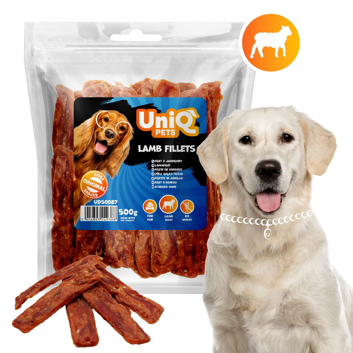 - Naturalne filety z jagnięciny – lekkostrawna, wysokobiałkowa przekąska odpowiednia dla psów z wrażliwym układem pokarmowym.