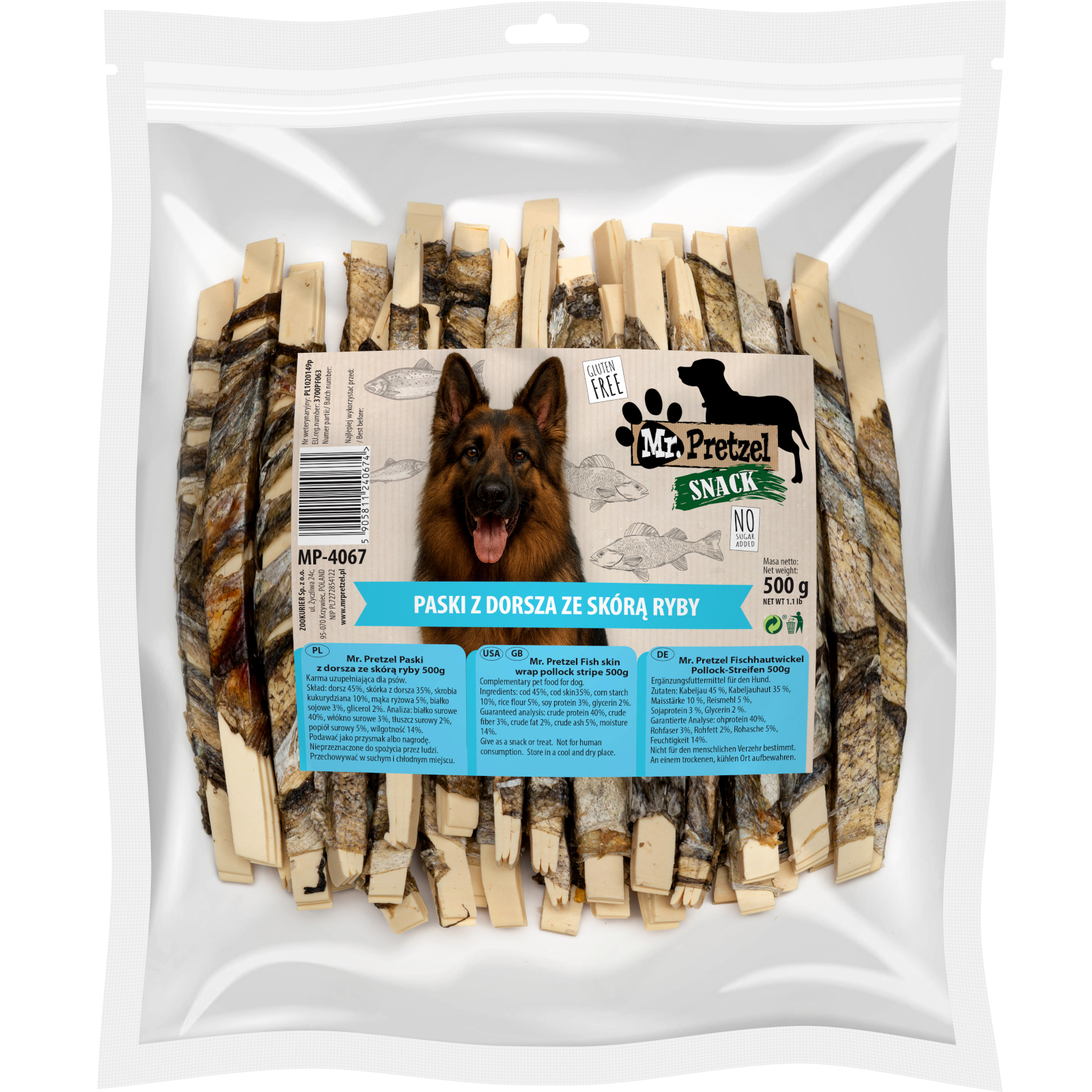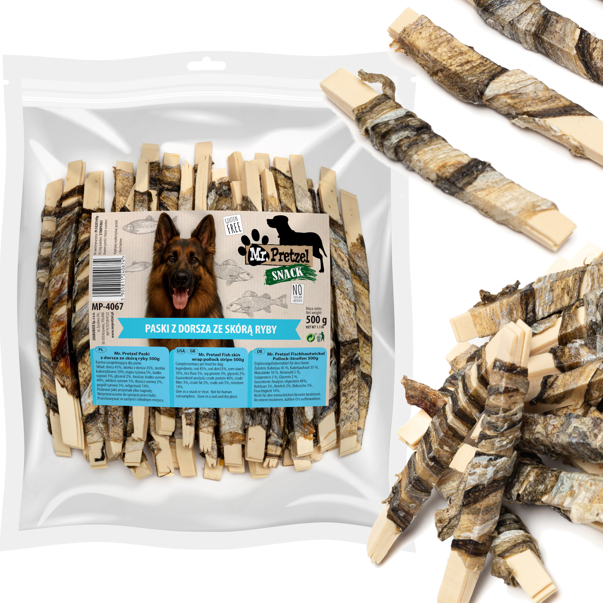 Przysmak, przekąska dla psa Paski z Dorsza ze skórą Ryby Mr. Pretzel 500g