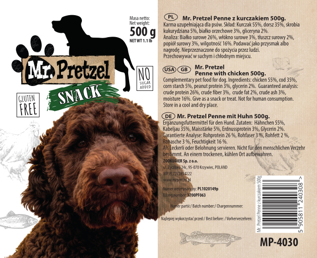 Przysmak, przekąska dla psa Penne z Kurczakiem i Dorszem Mr.Pretzel 500g