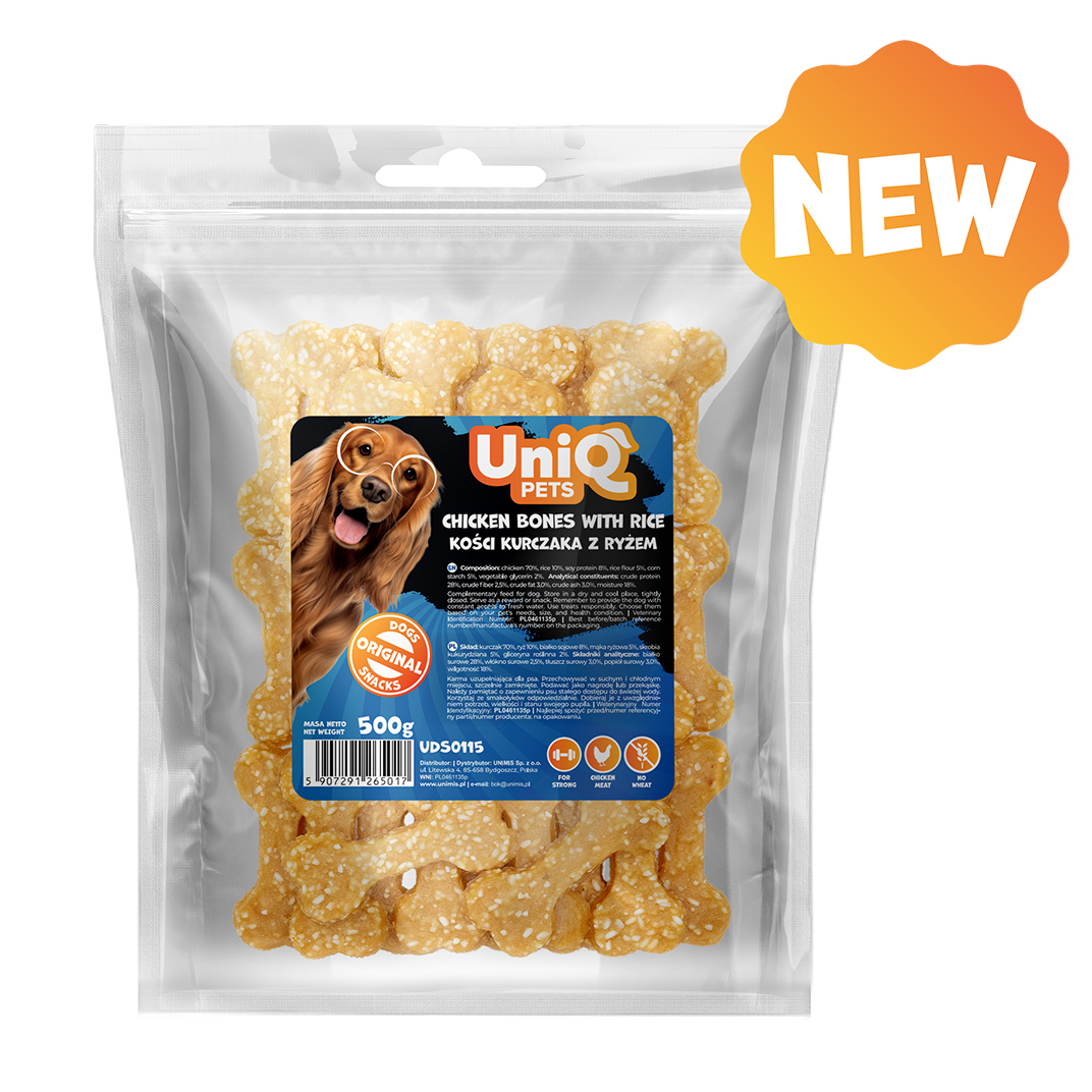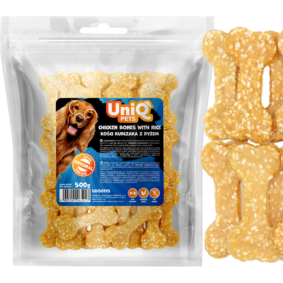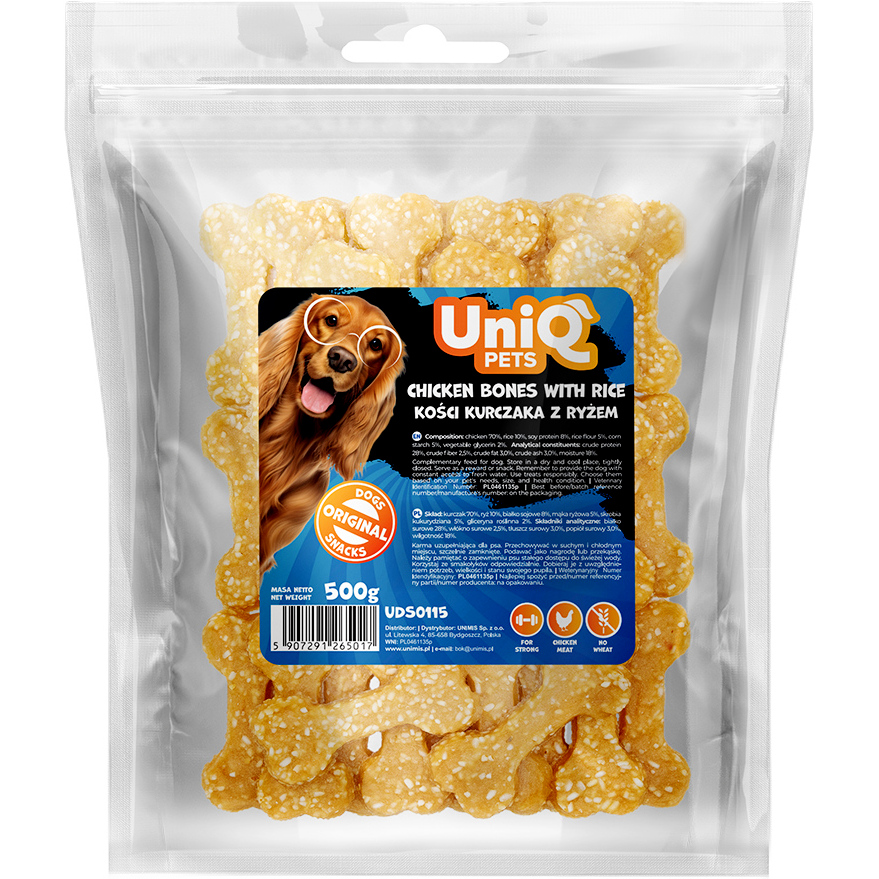 - Przysmak przekąska dla psa Miękkie Kostki z Kurczaka z Ryżem UniQ Pets 500g