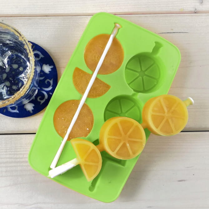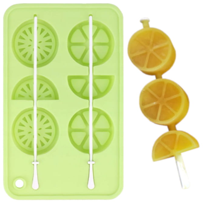 - silikonowe foremki do przygotowania kostek lodu w kształcie plastrów limonki z patyczkami