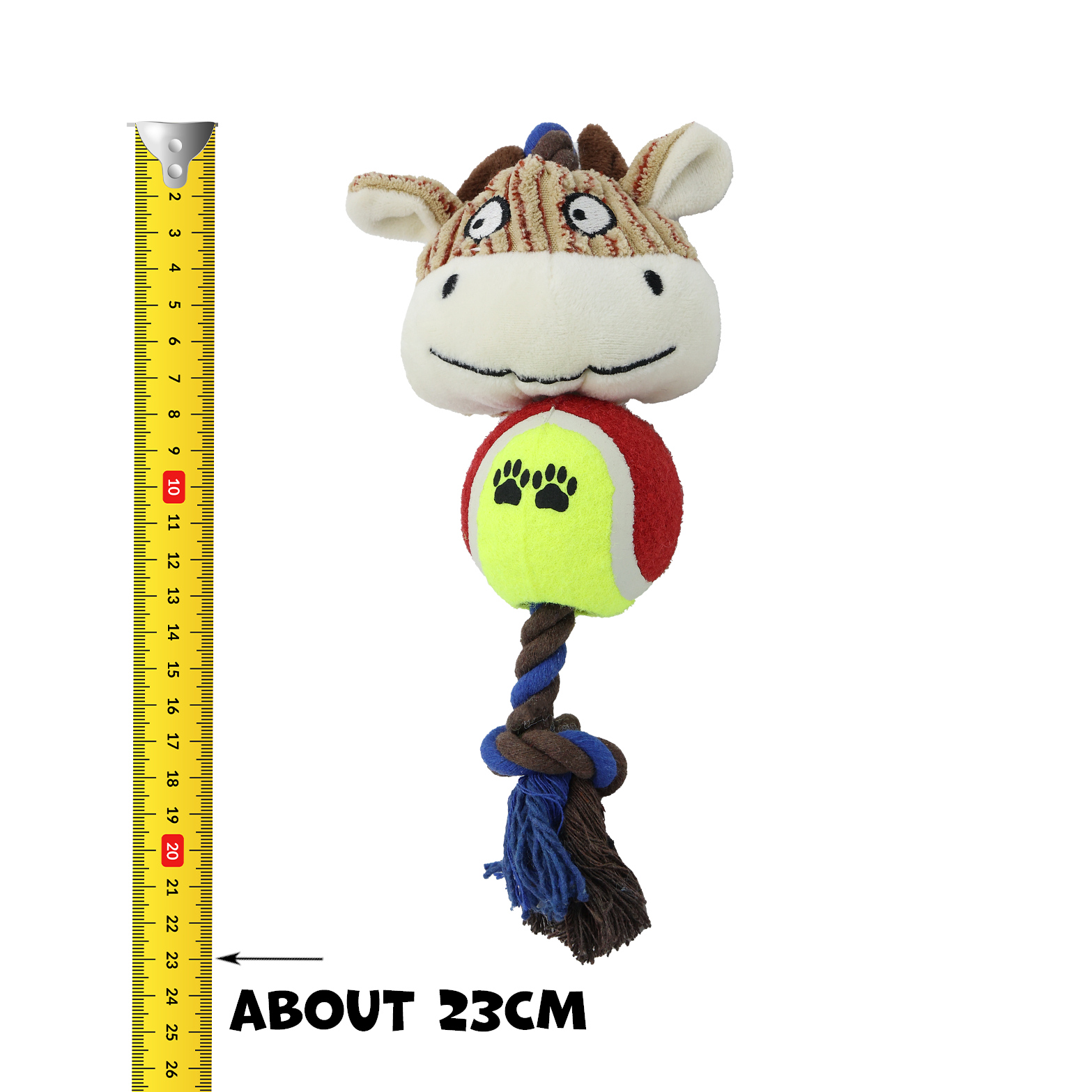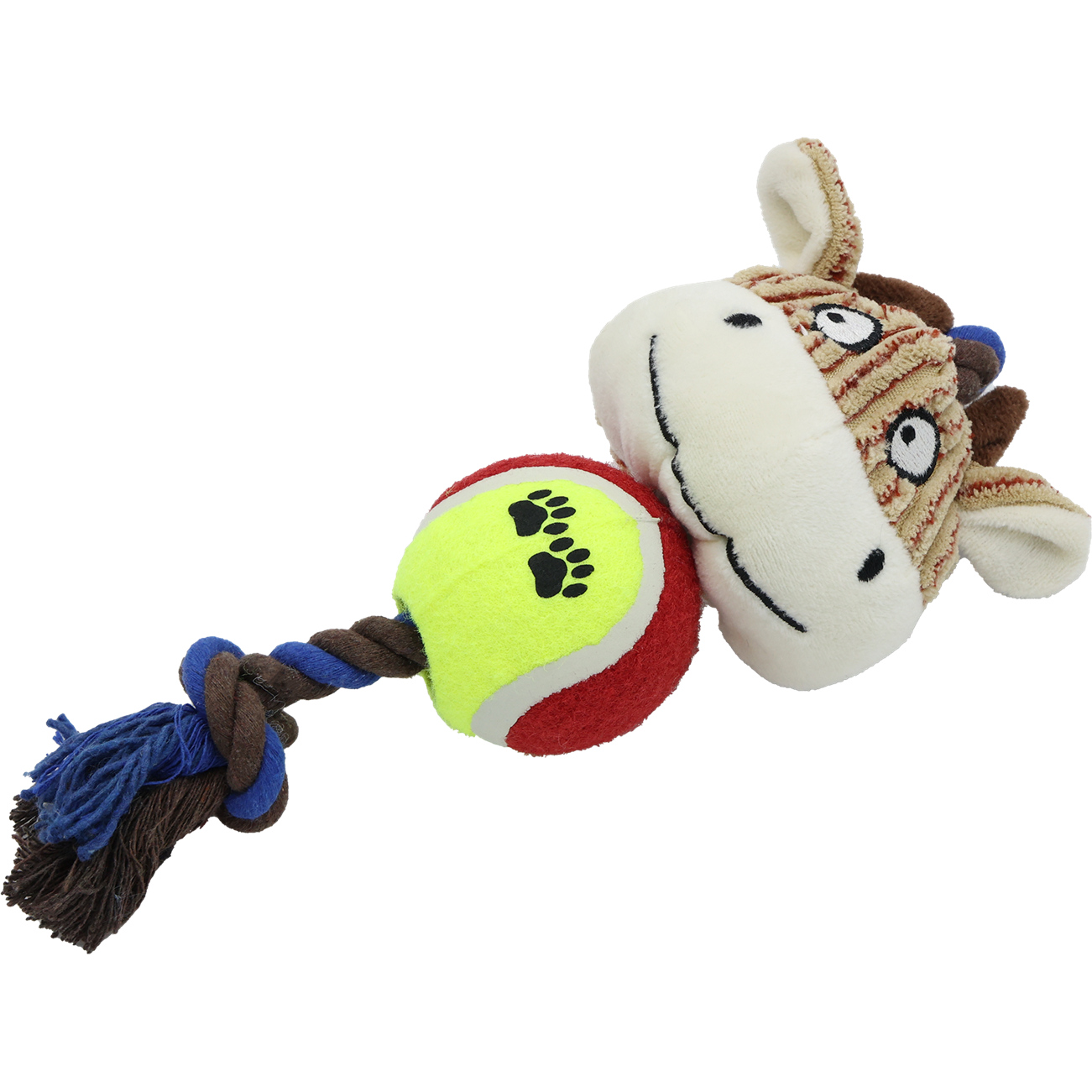 - Typ zabawki: pluszowa z piłką, sznurem i piszczałką